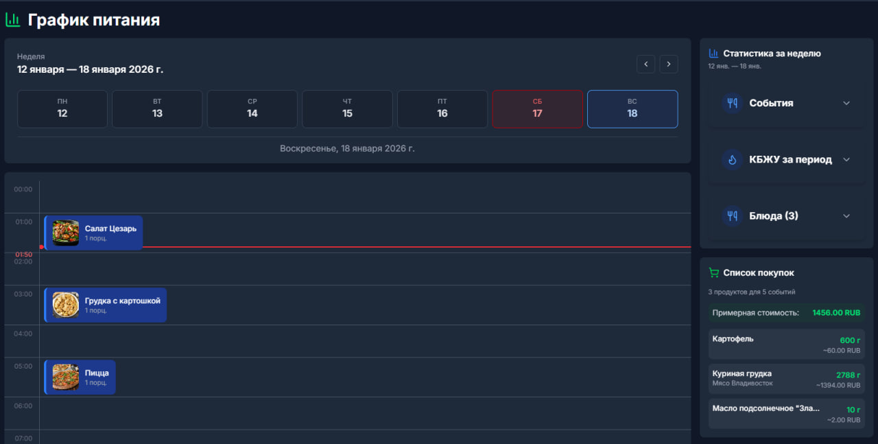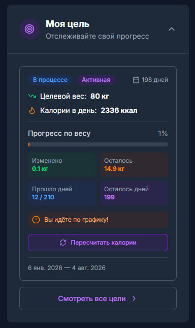 Трекинг КБЖУ, дневник питания, цели и физические характеристики в одном приложении