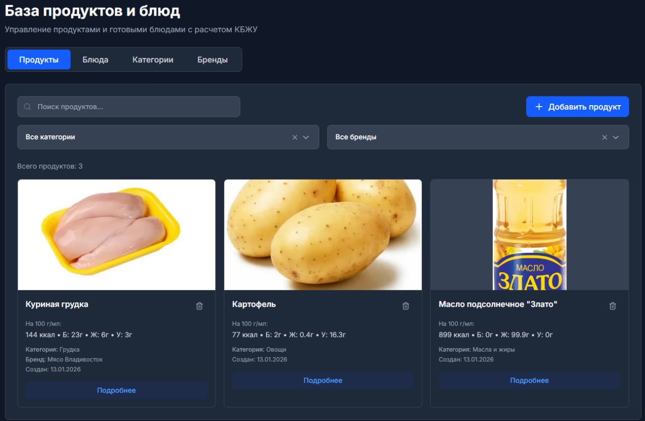 Продуктов в базе